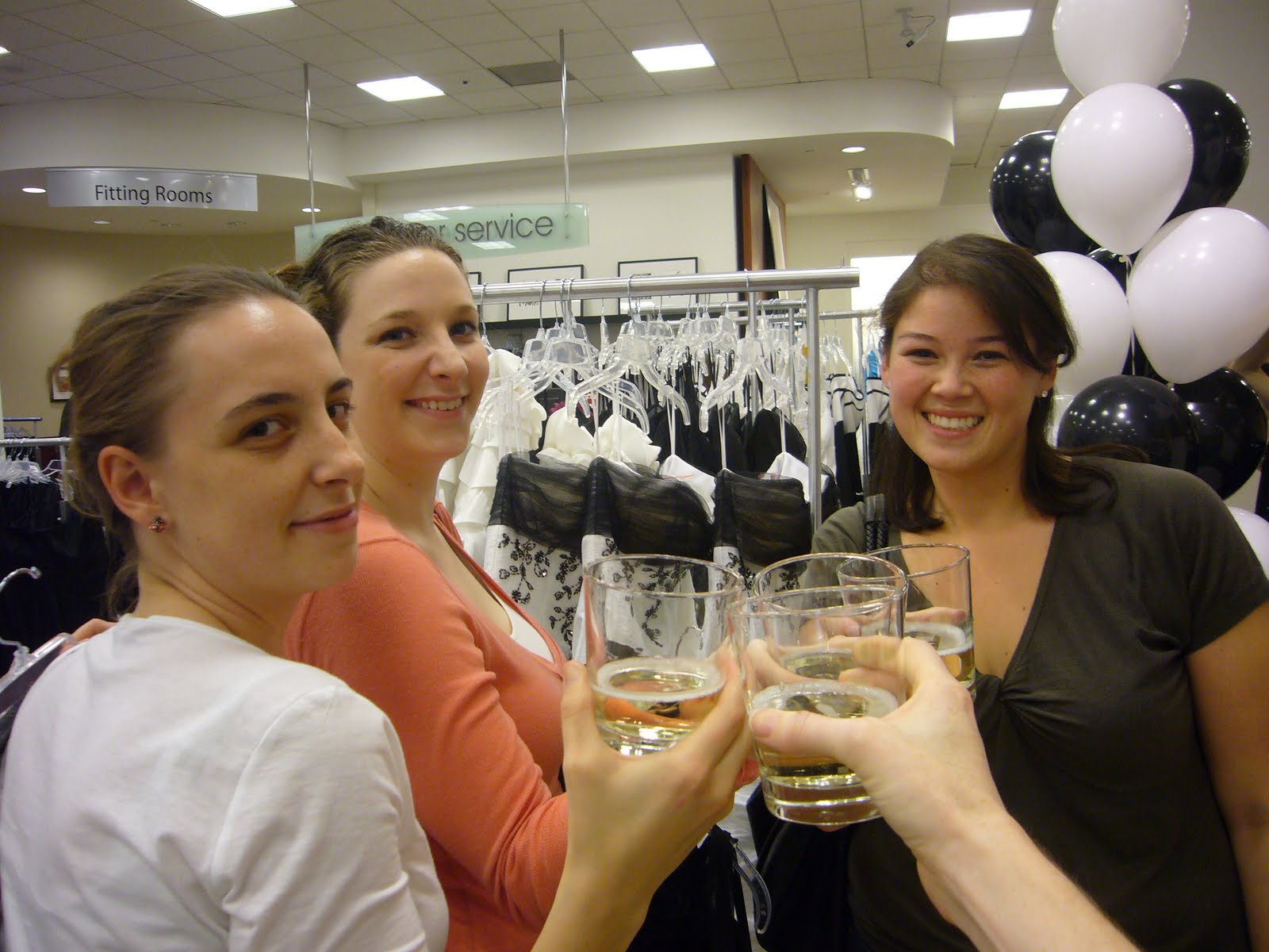I took a couple co-workers with me to the Macy’s evening wear department for a Black & White Ball fundraiser. Free drinks, delicious appetizers (mac-n-cheese with the tiniest spoon!), loads of wacky socialites and -of course- black and white gowns. Some prettier than others.