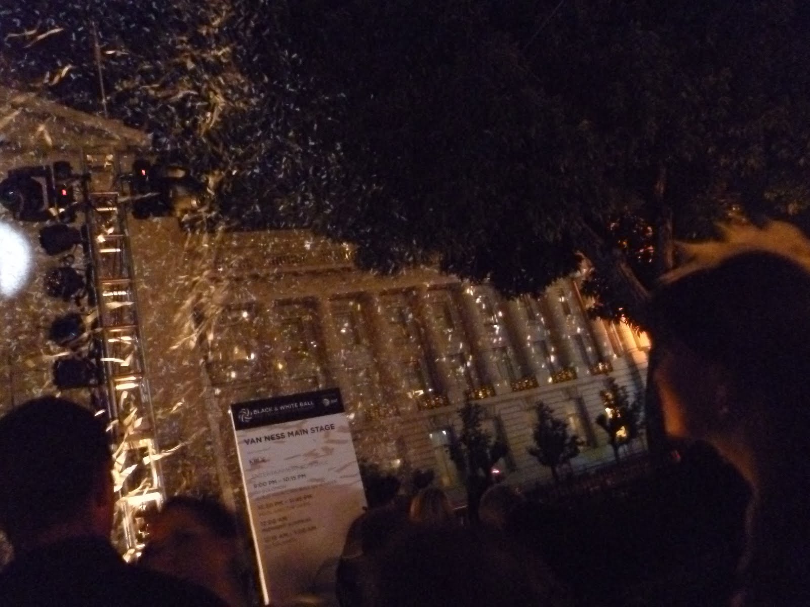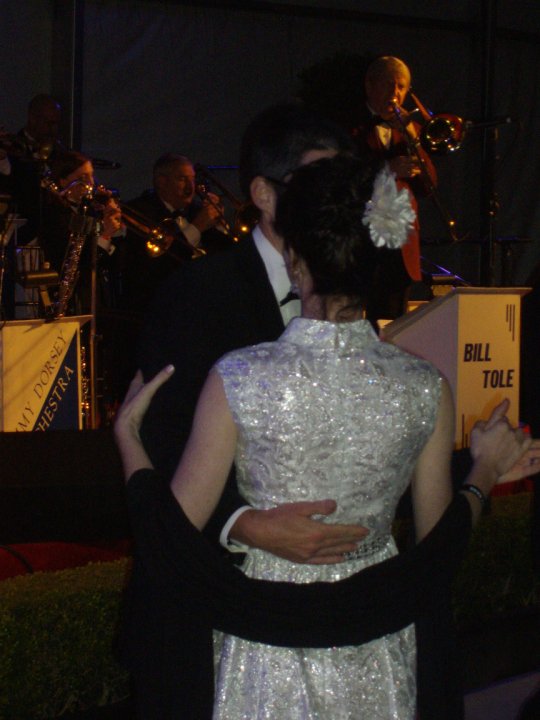 Next, outside to the stage in front of city hall for Kool and the Gang. This year, we had some eligible ladies along with us – surprisingly, there are quite a few single gentlemen out in tuxes at the event and very interested in inviting our friends for dances.