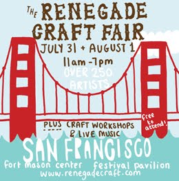 The Renegade Craft Fair comes to San Francisco this weekend. Head down to Fort Mason for some 250 booths of handmade inspiration. Like Etsy come to life!