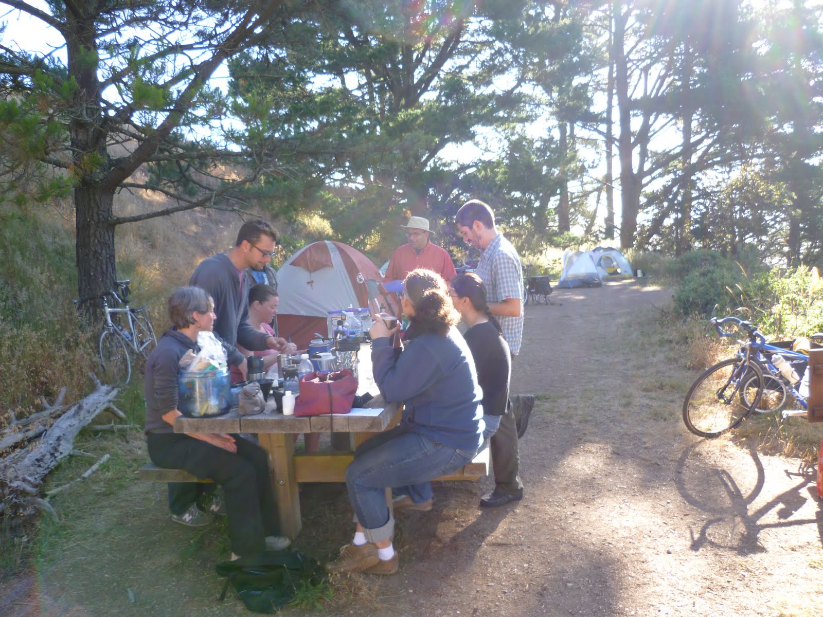 Only 10 miles away from home and an entirely different world, Marin Headlands provides city dwellers with a bit of nature just across the bridge. And when San Franciscans go camping, we do it in excess: no less than six kinds of gourmet cheese, artisanal bread, fresh fruit, local salami, drip coffee, beer, wine, brandy, vodka, whiskey, tequila, smoked salmon, half and half and chocolates. And all of this carried from the city and up a 1,000 feet to the campsite by bike!