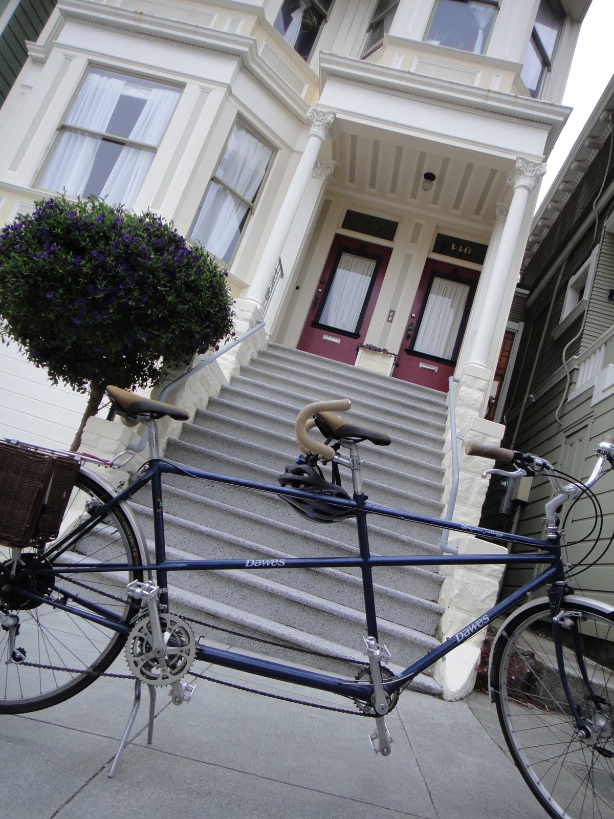 This weekend was full of friends and families – and even a little warm weather. On Friday night, Rob and I rode the tandem bike out to Cole Valley to see our friend Jill & Peter’s new home. A great flat with a deck perfect for BBQs! (top and last photo from Rob’s wrongbike.com)