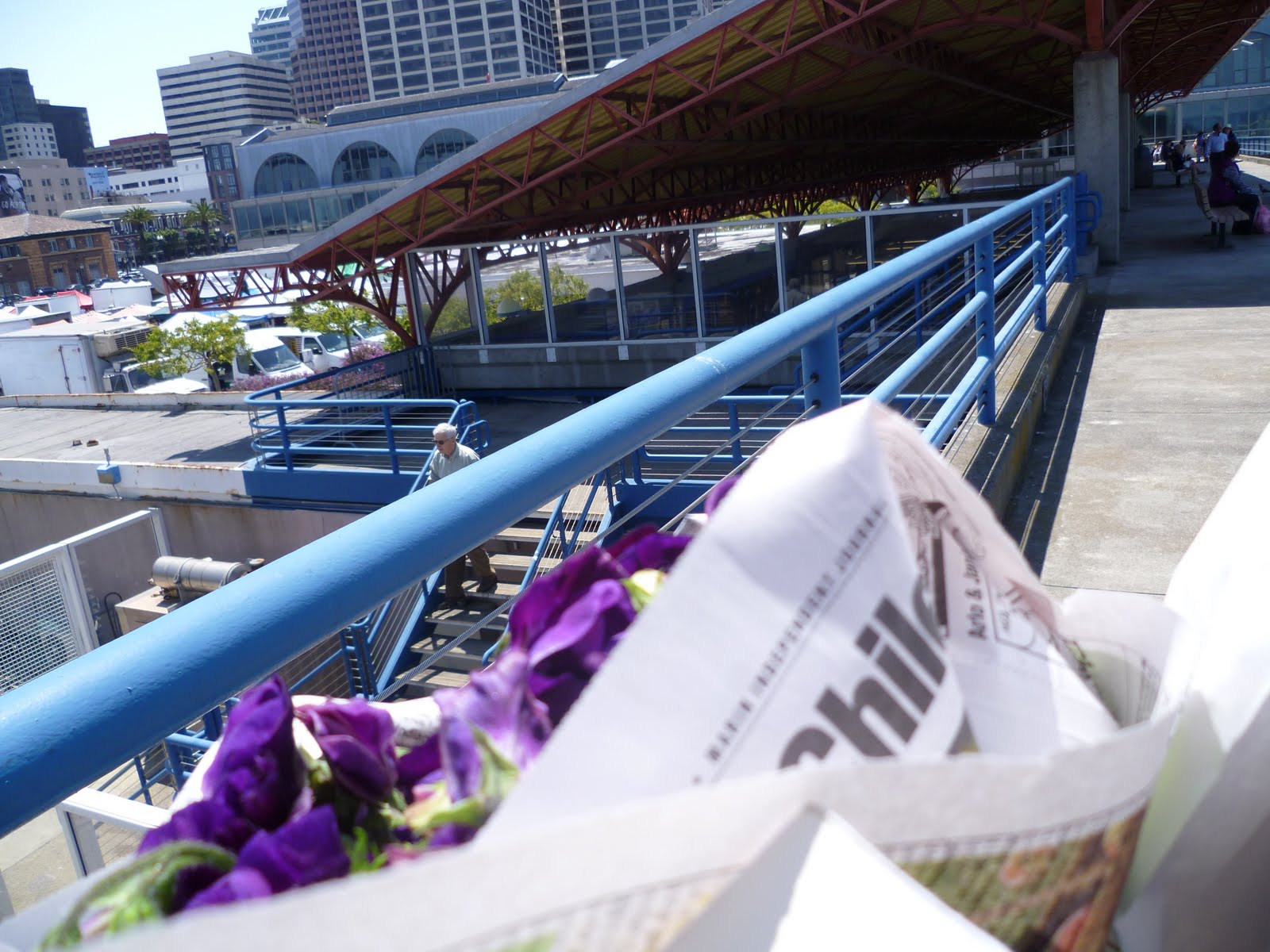 Rob headed off early on Saturday morning for a ride with the Mission team. I slept in while waiting for the fog to burn off.  A quick jaunt to the Ferry Building farmer’s market during the only few hours of sun and warmth during the weekend. I bought dark purple, almost navy, sweet peas, heirloom potatoes, a loaf of pain epi and a new book before heading home again.