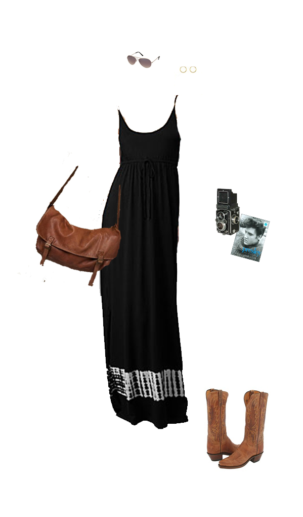 Here’s one of the get-ups I’ve brainstormed for the trip to Memphis in a few weeks. Maxi dresses are my favorite for staying cool but still covered up – this one has a rocker-edge.