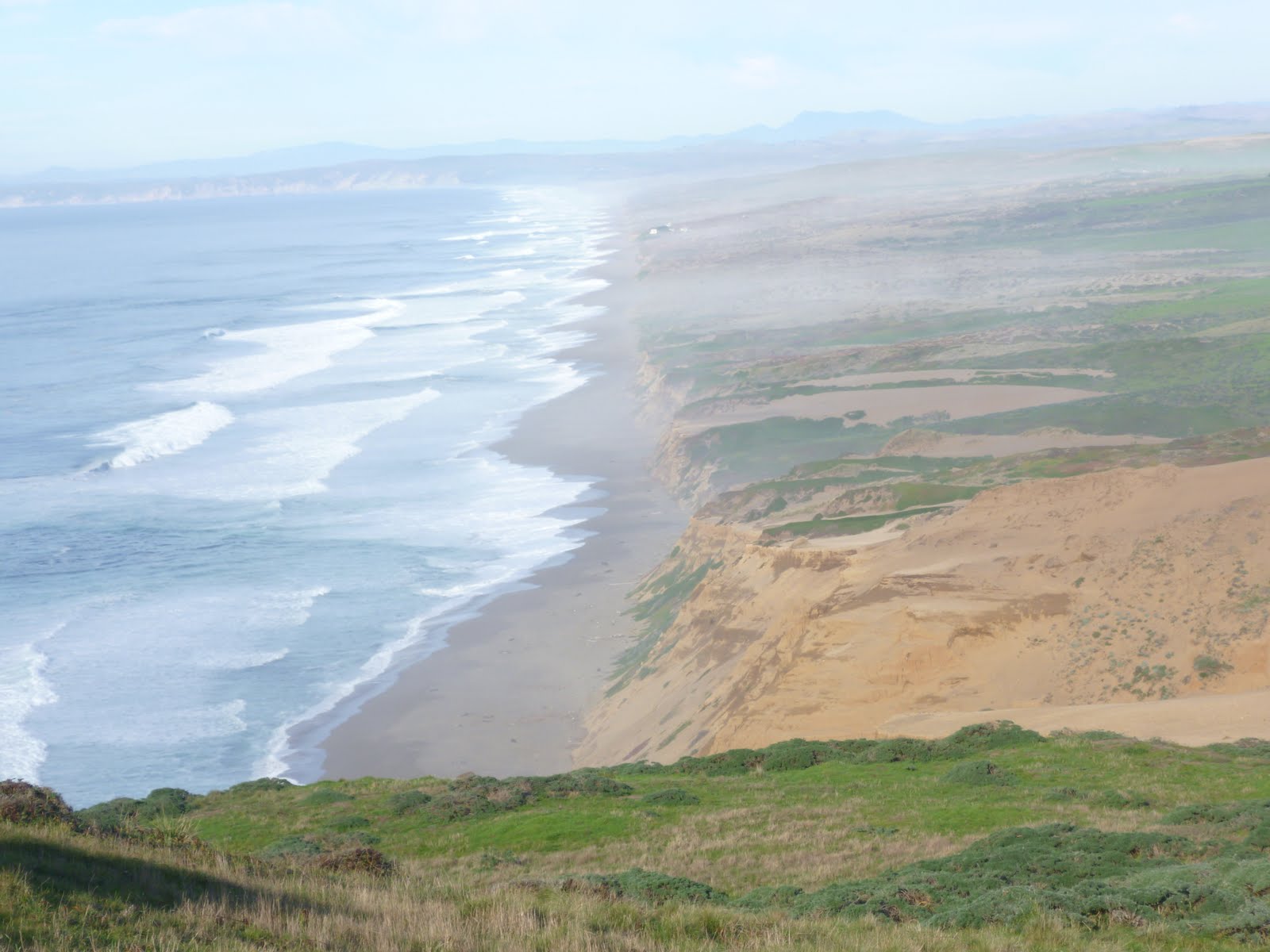 Five beds made downstairs, a load of dishes in the wash and a load of napkins in the machine when we finally tucked in before 1. It was no surprise that we slept through the alarm the next morning. But still up and at ’em at 8:30. We loaded into two cars and drove to the Dipsea Cafe in Mill Valley for breakfast. From there, the eight of us drove onward through Stinson Beach to Point Reyes for hiking on the “moors” of Northern California.