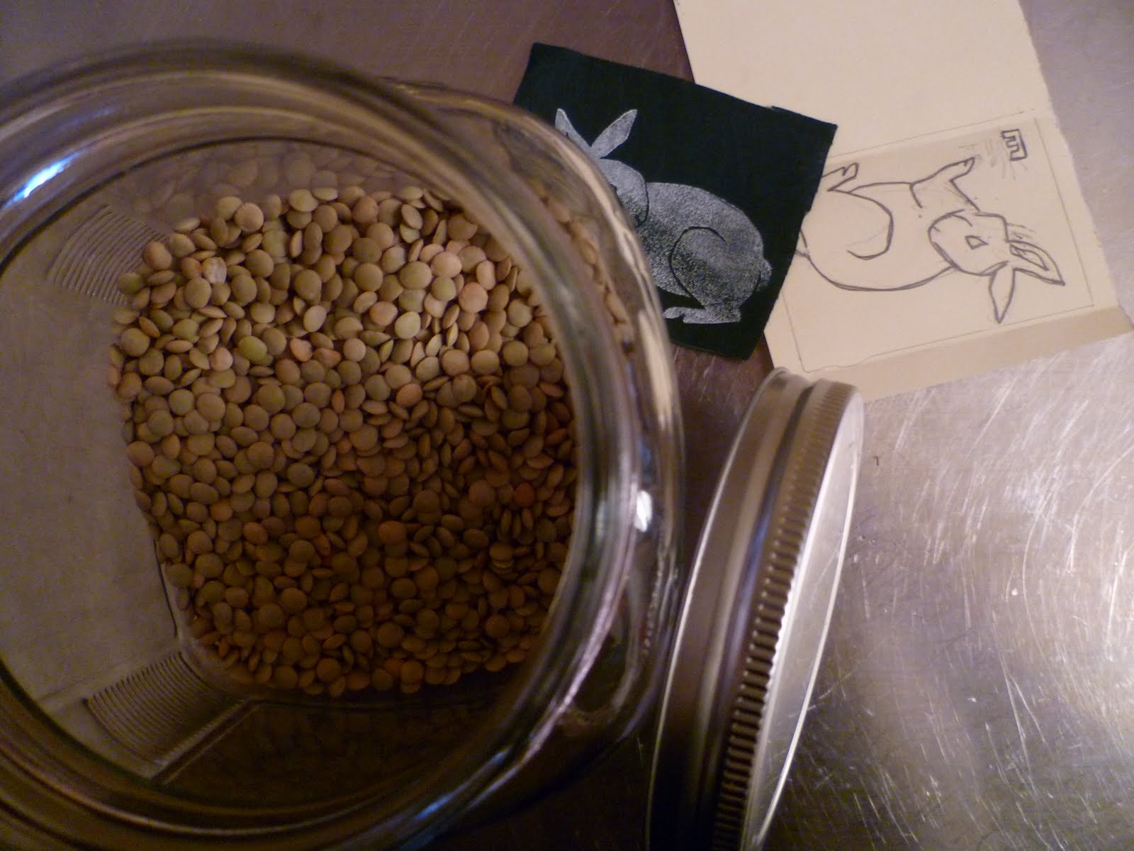 Back to The Grove to meet up with Rob having some lunch. Then home to the apartment stopping at the art store. Rob and I sat down to watch a movie, but both fell asleep. In the evening, I worked on printing the rabbit engraving on fabric and making a big dinner of pasta with lentils, kale, green olives and pepitas.