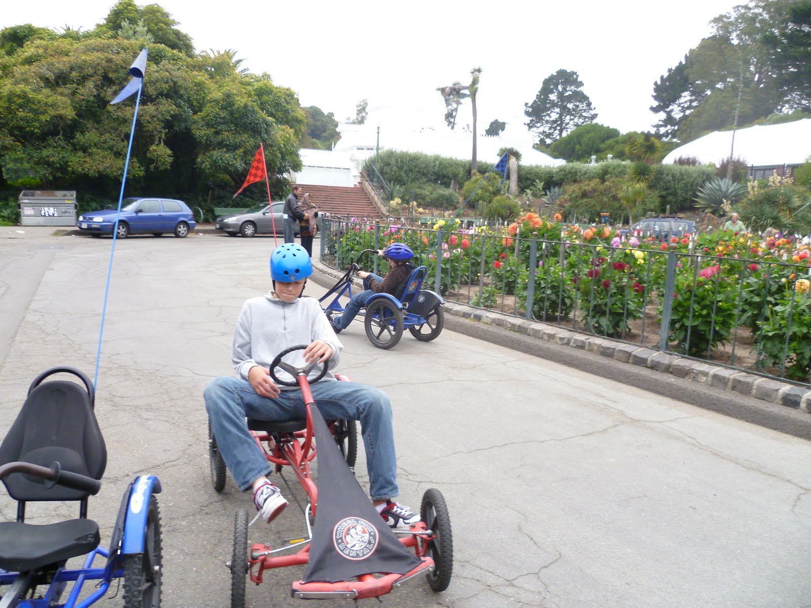 In between sets, Rob and I have been trying our best to wear out the boys around the city. Last night I took them to Golden Gate Park by train where we rented go-cart bikes from the nice man at Stowe Lake. The three of us pedaled like maniacs all over the place.