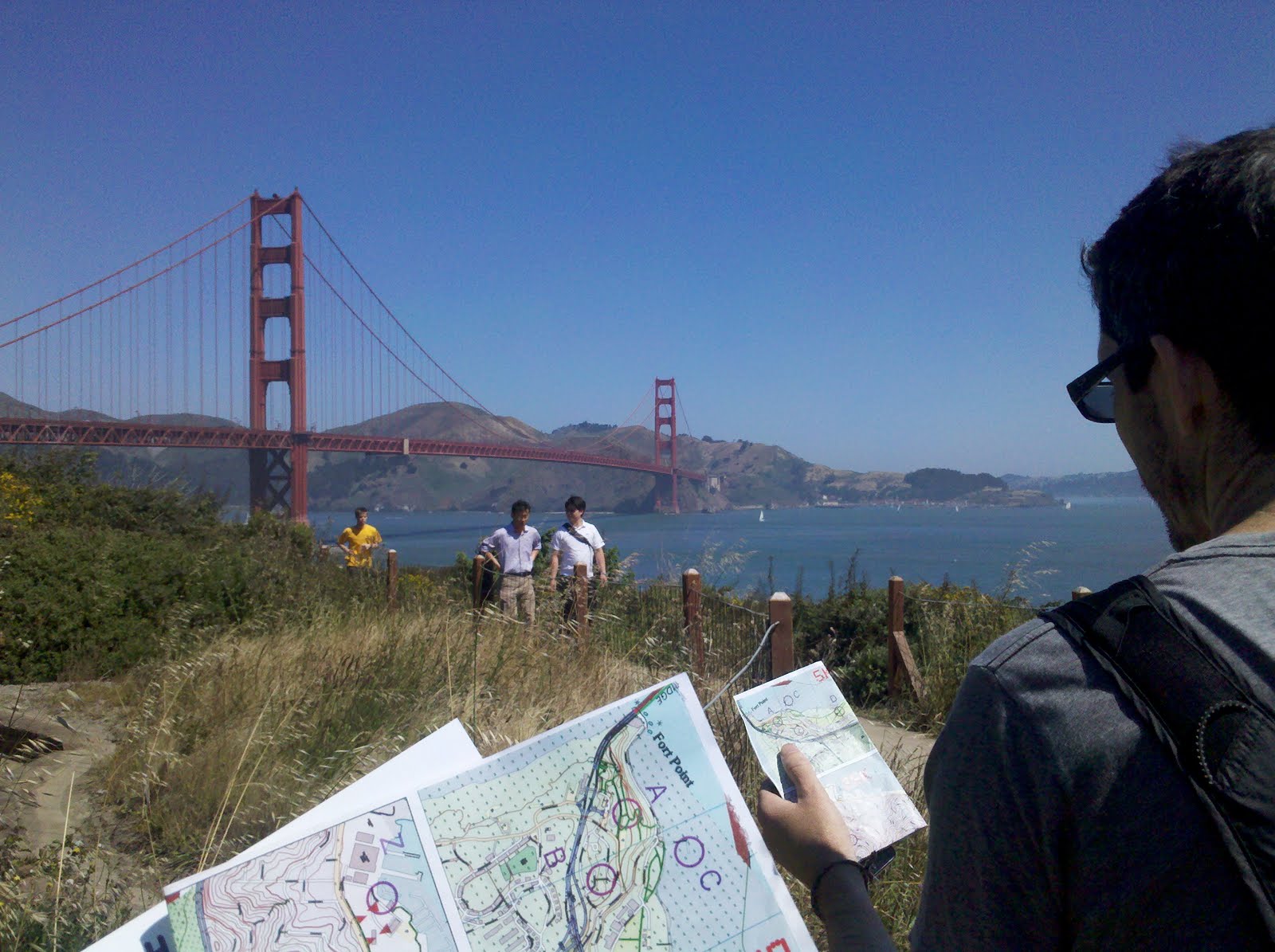 Rob and I biked over to Crissy Field at 9:00 for a Terra Loco orienteering race. We signed up for the 5k, not sure what to expect and I stubbornly refused to run even when everyone else went sprinting off. Here we are at the second to last marker of the race overlooking the bridge.
