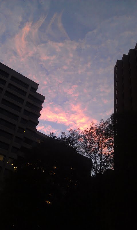 The three of us walked around the Ferry Building for a bit. Rob caught Nicole a cab and we walked home. Gorgeous sunset over the city, a rare sight. We met up with our neighbor along with baby and dog for part of the walk home.