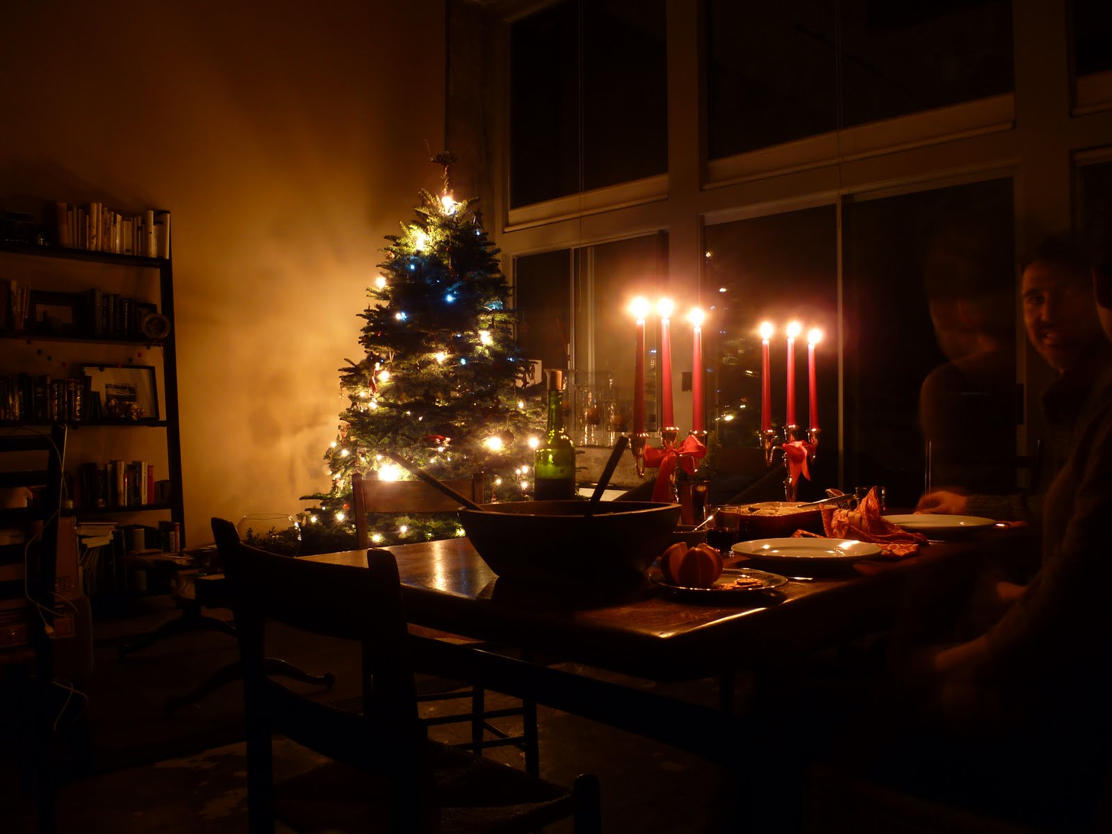 With Rob missing Christmas on account of his cold, I made a big dinner of leftovers for us on Monday night. The two of us sat by candlelight with the bright tree…it was the nicest dinner imaginable!