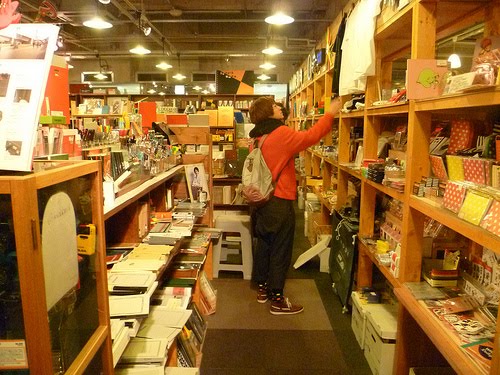Rob and I spent a couple hours down in the neighborhood after dinner – shopping at a 12-story sports store and discovering my favorite bookstore yet. Standard Bookstore had an incredible selection of things made by local artists, stationery, magazines, books, art supplies and jewelry. I bought half of my Christmas presents in this one shop: