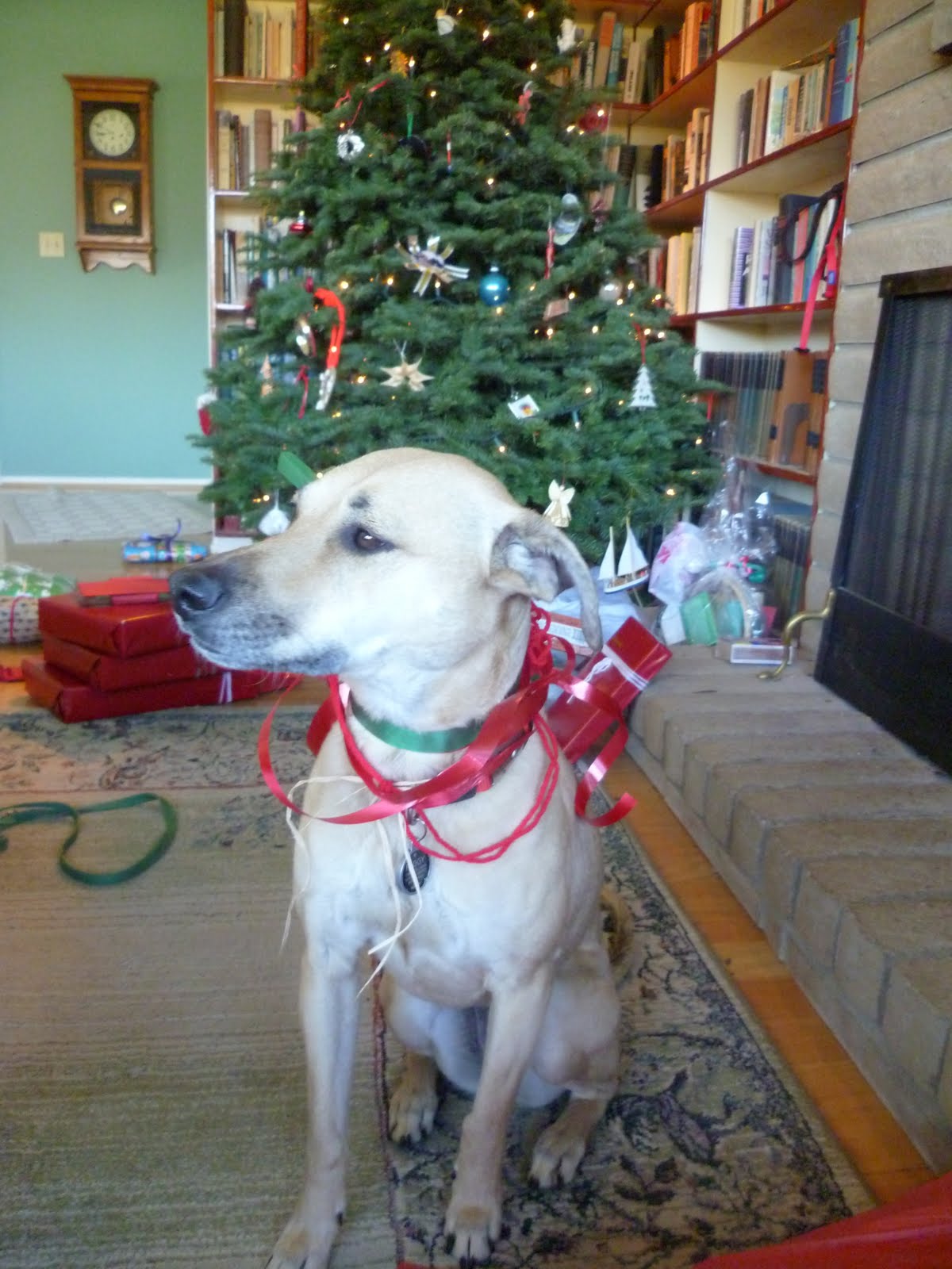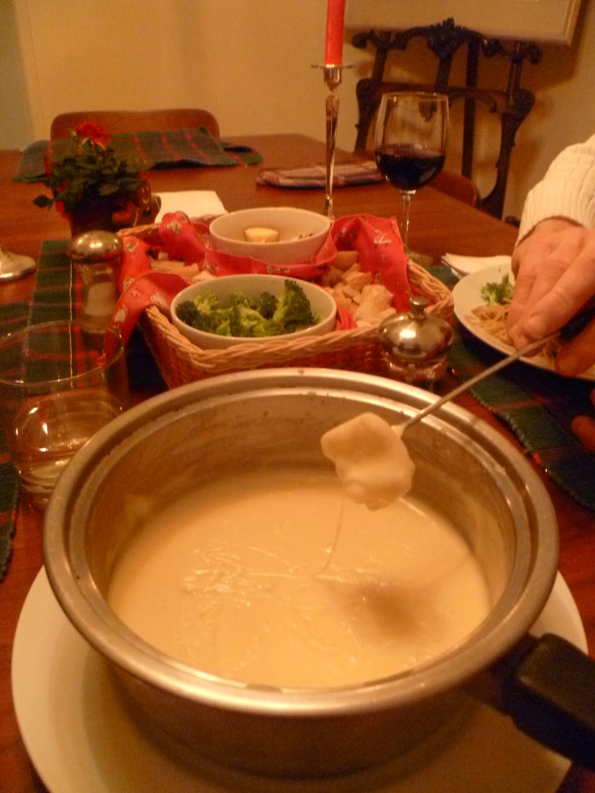 That morning, we did the regular routine of farmer’s market and breakfast in town. Rob’s sister called to say that her whole family was sick too – we agreed that the healthiest three kids would come for Christmas dinner along with her. Back at home, I played with my parent’s new dog, Peggy, worked on a puzzle and finished the last 40 Christmas cards on my list. Margaret came over for a visit in the afternoon. After her visit, we prepped some food for the next day’s party. In the evening, we had a quiet fondue dinner: