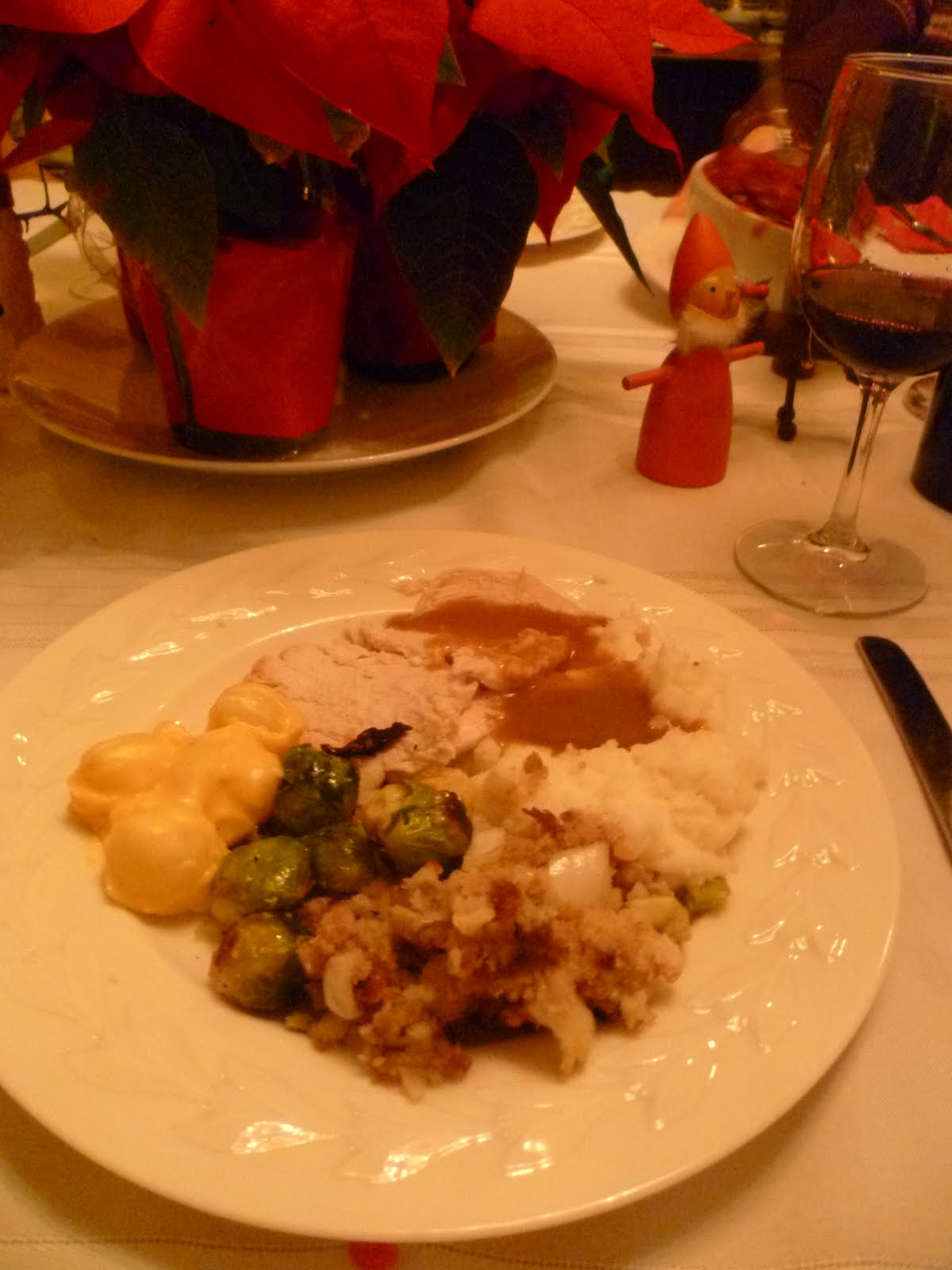 Of course, your own mother’s Christmas dinner is always the best in the universe – but this year’s was particularly great. Turkey, mashed potatoes, stuffing, white wine gravy, roasted brussels sprouts and creamed pearl onions:
