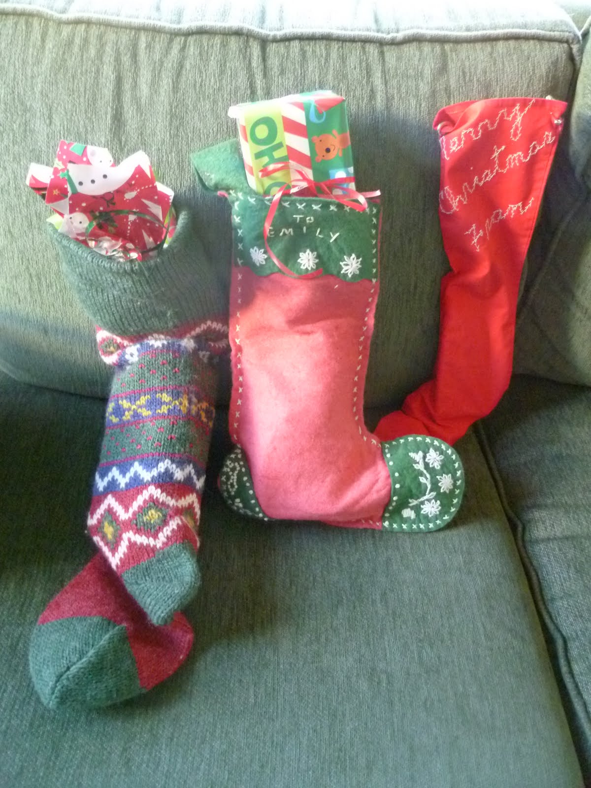 Christmas morning was a lot smaller than our usual spread. Only three stockings instead of a big row, but plenty festive: