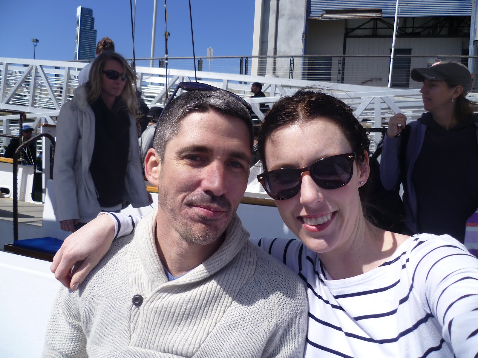 Finally, Sunday at 2:30 we had plans to go sailing with friends who bought a deal online. I bundled up with long johns under my boating clothes…and we were the only people on the 90 ft ship in anything vaguely nautical. Everyone in our party was dressed in all black. The other half of the boat was six year old girls in hot pink. Like a crazy pirate ship!