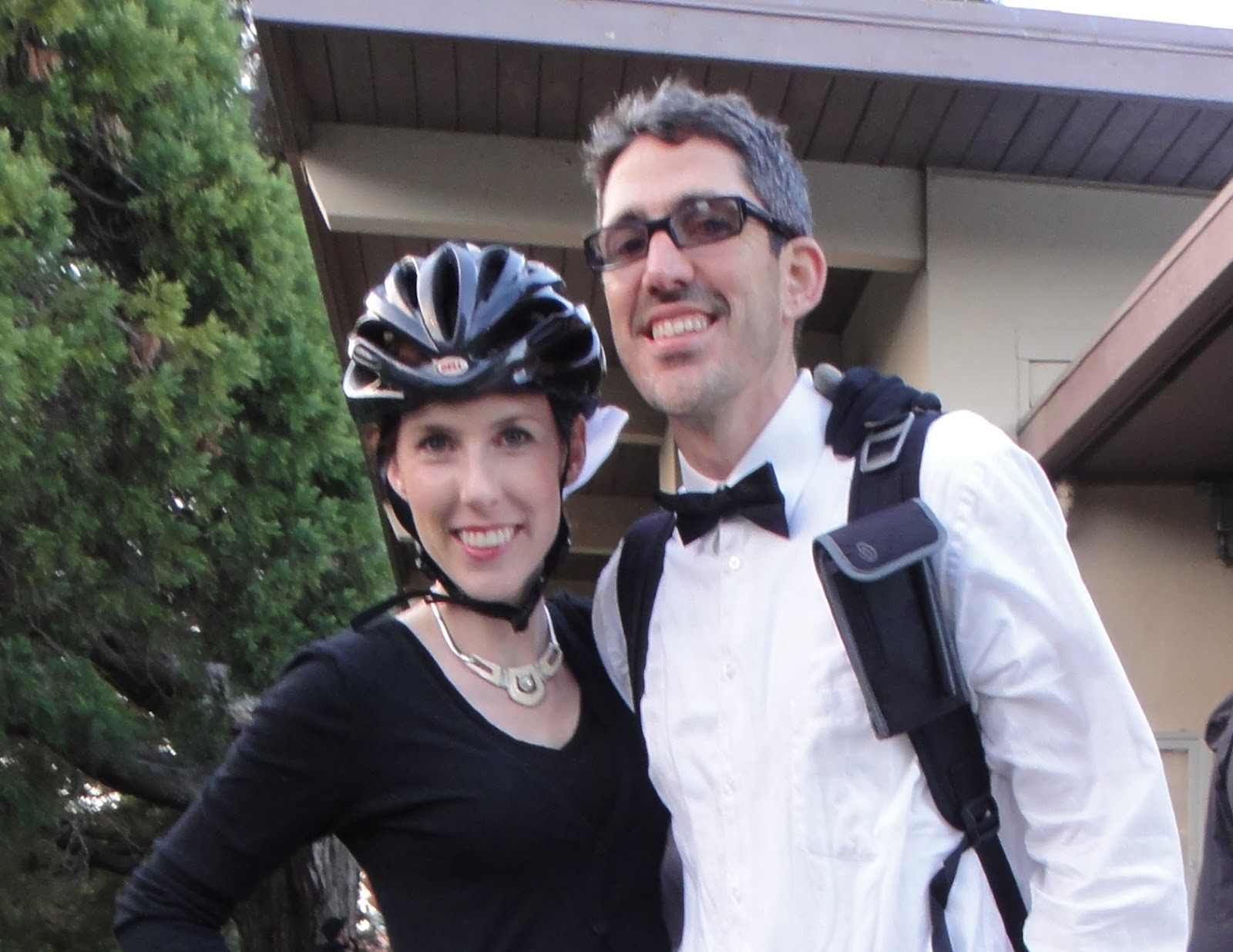 On Friday, we kicked off the festivities with a black and white themed night of Bike Party. About a 1,000 riders dressed up in black and white garb to ride across the city. Rob and I got decked out and had a nice time with our friends: